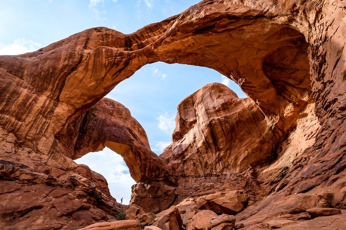 The five minute hike to Double Arch is probably one of the shortest and easiest hikes in Utah and the Arches National Park, but youβre rewarded with a view that is just fantastic.