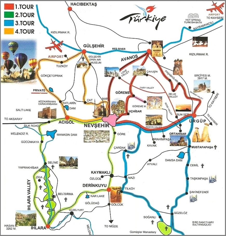 The 4 popular tours in Cappadocia are color coded and each one covers a different area. My personal favorites are the Red Tour and Green Tour (more on that later).
